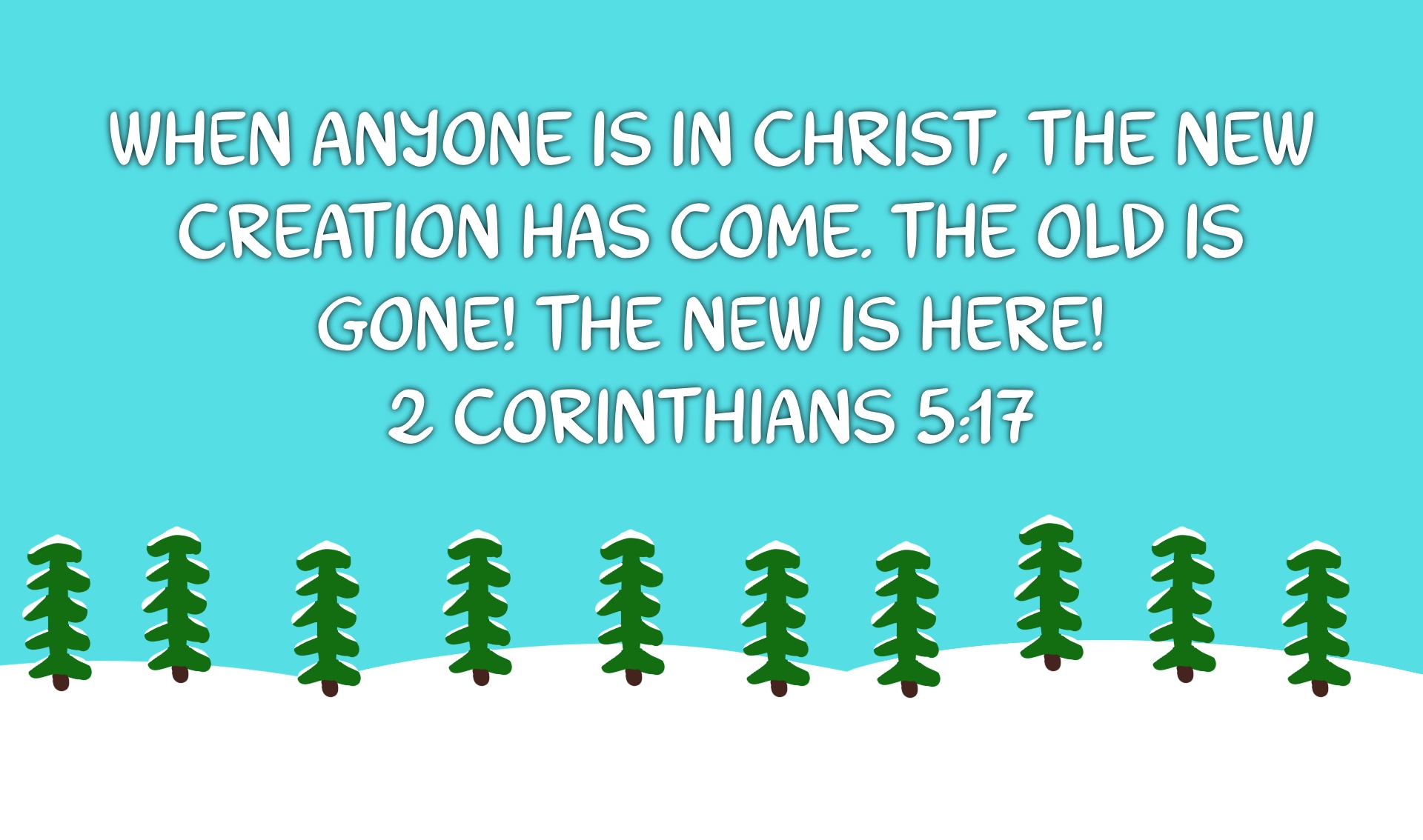The Bible says, “When anyone lives in Christ, the new creation has come. The old is gone! The new is here!” – 2 Corinthians 5:17 (NIrV)